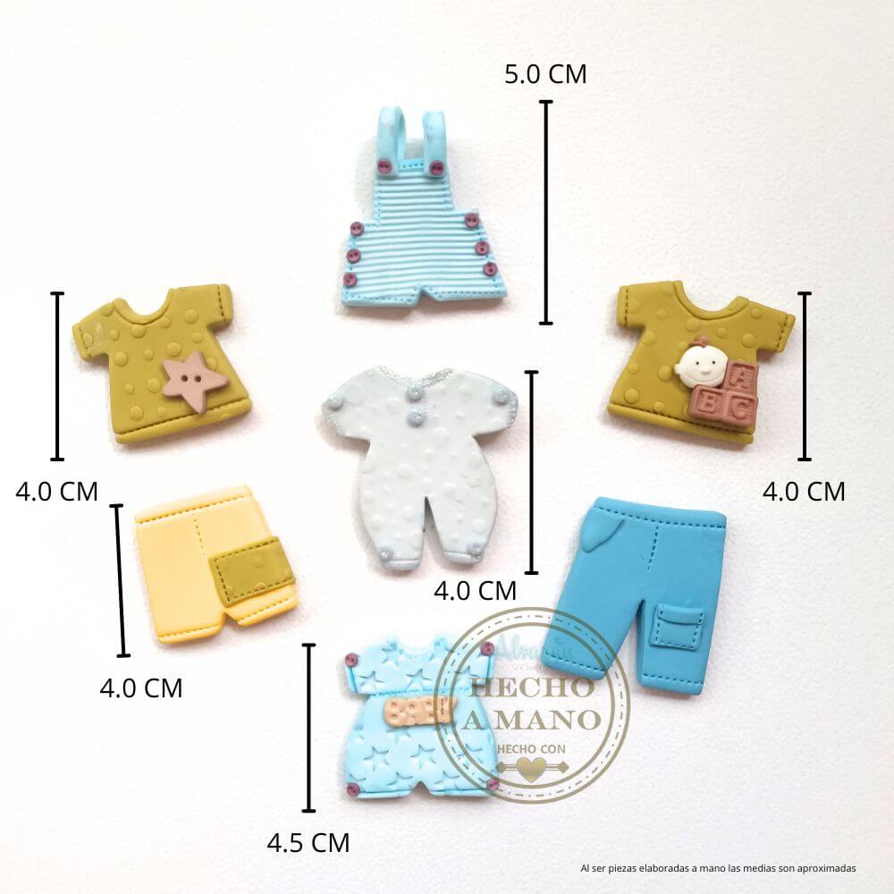 Incluye: 1 cortador de short, 1 cortador de playera, 1 cortador de pantalon, 1 cortador de mameluco, 2 cortadores de Jumpers diferentes..