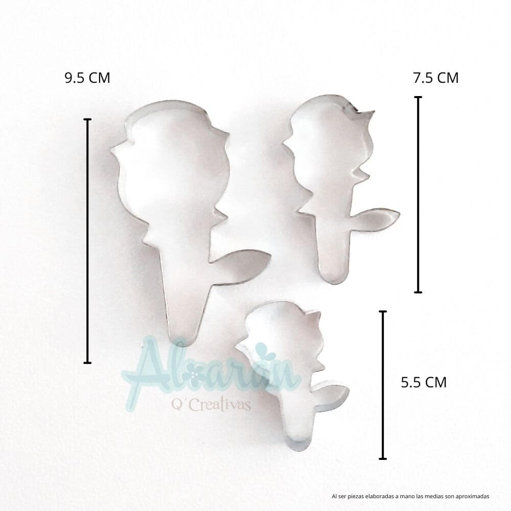 Incluye: 3 Cortadores de silueta de Rosa con el tallo de diferentes tamaños.