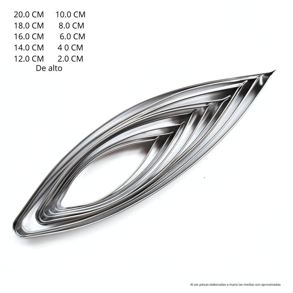 Incluye: 10 Cortadores de hoja de larga de dos picos de diferentes tamaños. Medidas aproximadas: 20cm, 18cm 16cm, 14cm, 12cm, 10cm, 8cm, 6cm, 4cm, 2cm de largo.