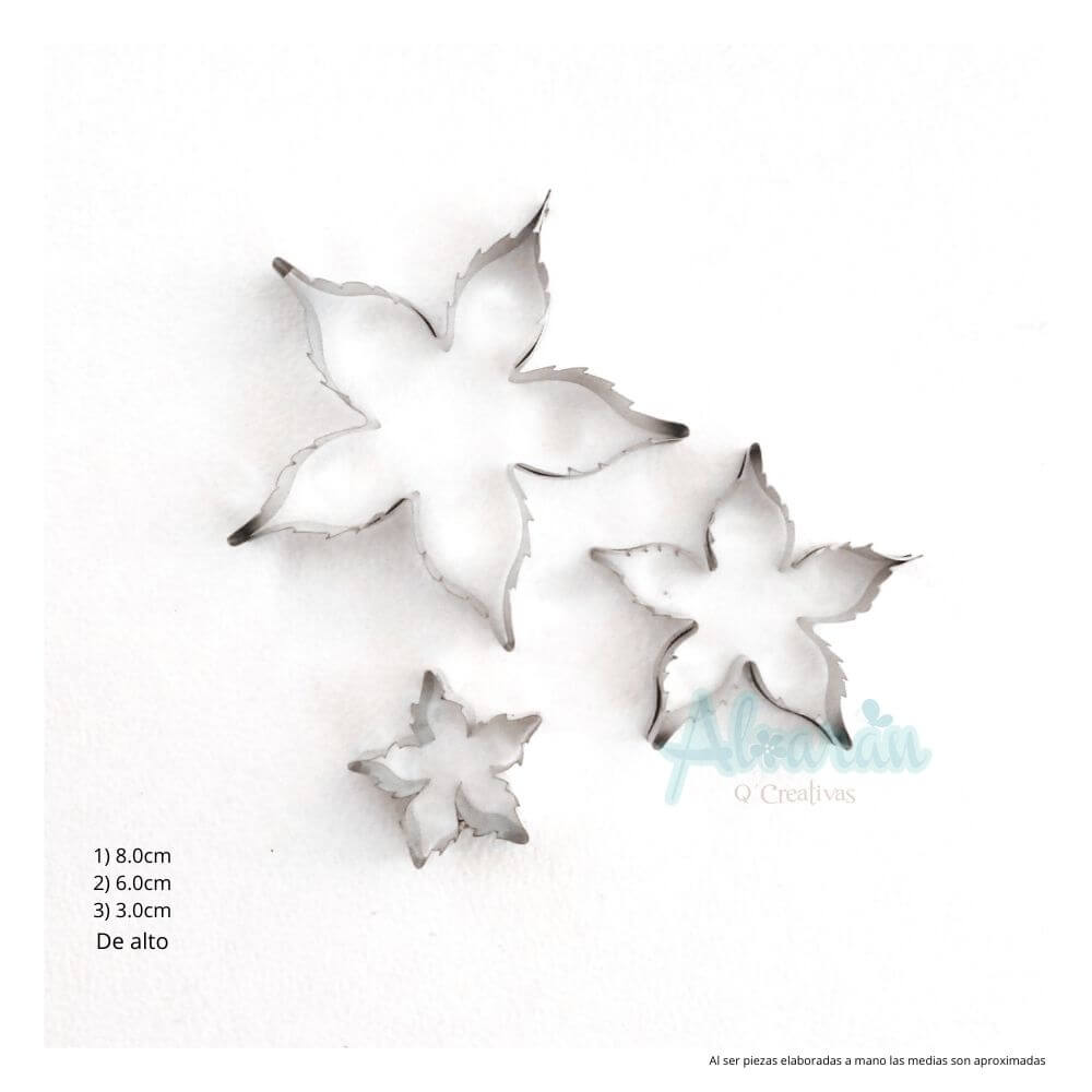 Incluye: 3 Cortadores de sépalo de Rosa para armar de diferentes tamaños. Medidas aproximadas: 8cm, 6cm y 3cm de altura.