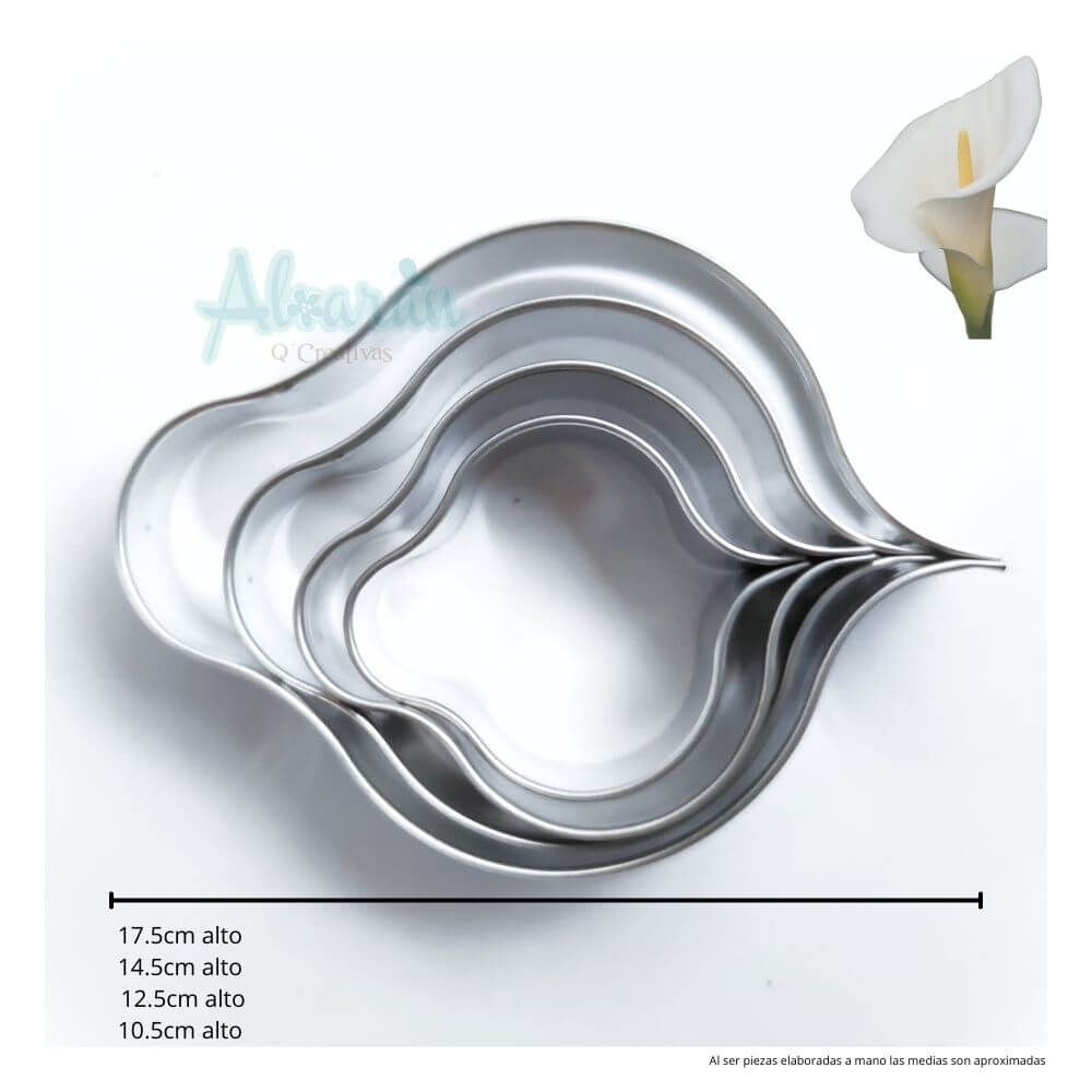 Incluye: 5 Cortadores de flor de Alcatraz de diferentes tamaños.