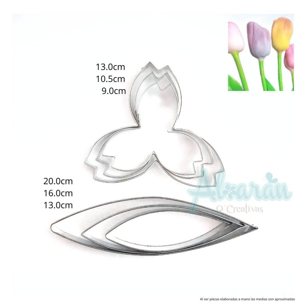 Incluye: 6 Cortadores de flor y hoja de Tulipán para armar.