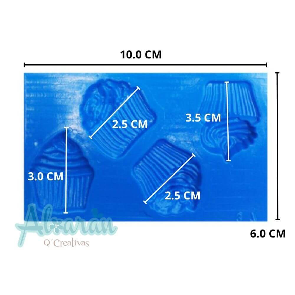 Incluye: 1 Molde flexible para manualidades de cup cake. Medidas aproximadas del molde: 6cm de alto x 10cm de ancho.