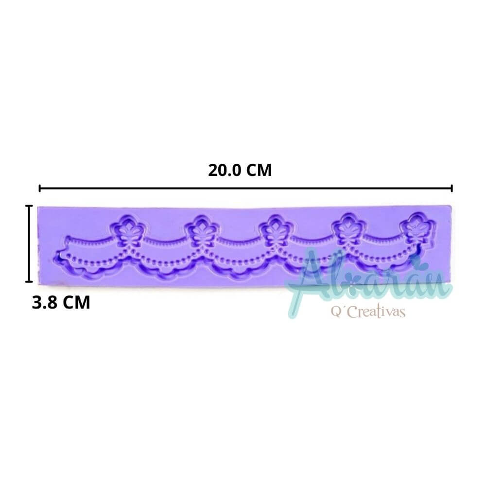 Incluye: 1 regleta flexible para manualidades con forma de babero, molde flexible. Medidas aproximadas del molde: 3cm de alto x 20cm de ancho.