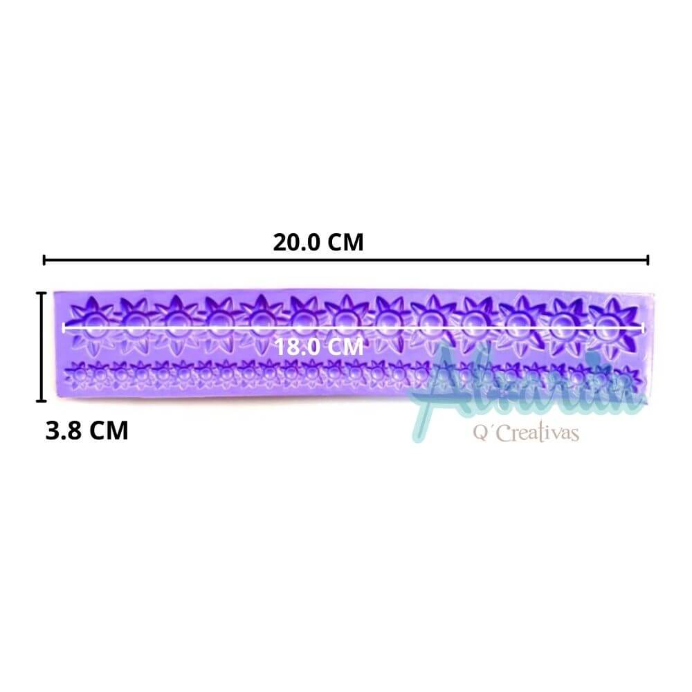 Incluye: 1 regleta flexible para manualidades con forma de soles, molde flexible. Medidas aproximadas del molde: 3cm de alto x 20cm de ancho.